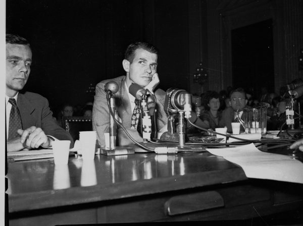 Soviet spy and Democratic administration official Alger Hiss testifying before the House Un-American Activities Committee in Washington, DC, on Aug. 25, 1948. (AP Photo)