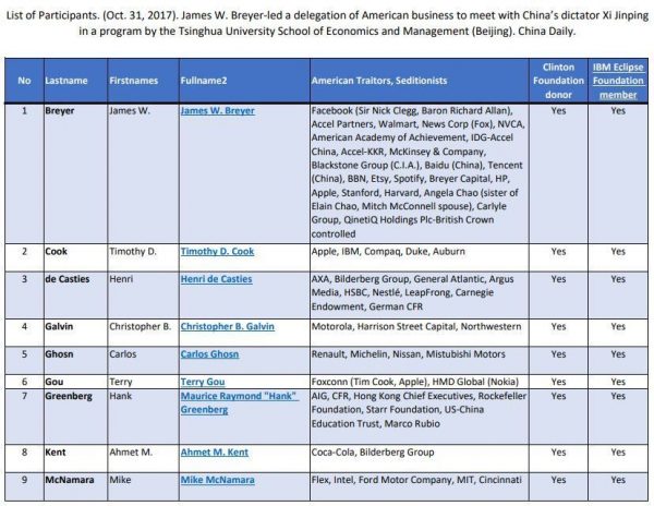 While our President was fighting off the Senior Executive Services and their neverending attacks on President Trump from the Russia Collusion hoax to the shampeachment, these TRAITORS were in China selling out America. Each traitor, if found guilty, will need to be hanged for treason and/or espionage.